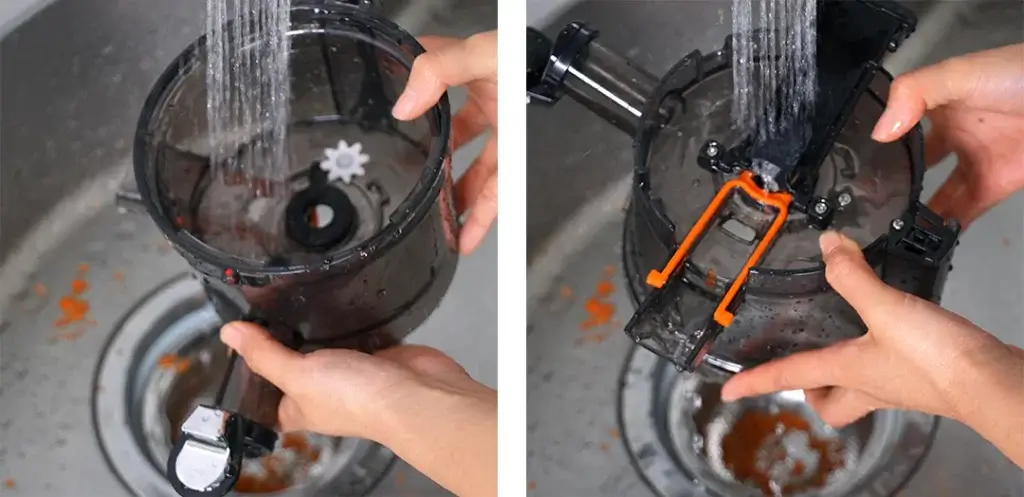 Kuvings meyve sıkacaklarınızı temiz ve taze su ile durulayarak, posayı dışarı itebilir ve ön durulama yapabilirsiniz.