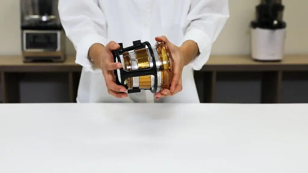 Süzgeç döndürücüsünün içine meyve suyu süzgecini yerleştirin. Süzgeç döndürücüsü, yalnızca meyve suyu süzgeci ve smoothie süzgeci ile kullanılır. Süzgeç doğru şekilde yerleştirildiğinde döndürücü sorunsuz bir şekilde döner.