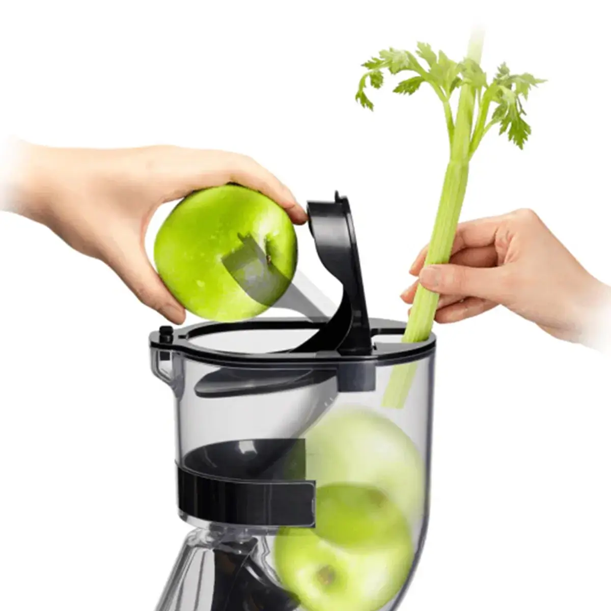 CS600 Chef Slow Juicer’in 88 mm çapındaki Flip Gate açılır kapak haznesine büyük boy besinleri dahi parçalamadan bütün olarak atabilirsiniz. Sahip olduğu ikinci atım haznesi ise ince uzun besinleri kolayca kullanabilmenize olanak sağlar.