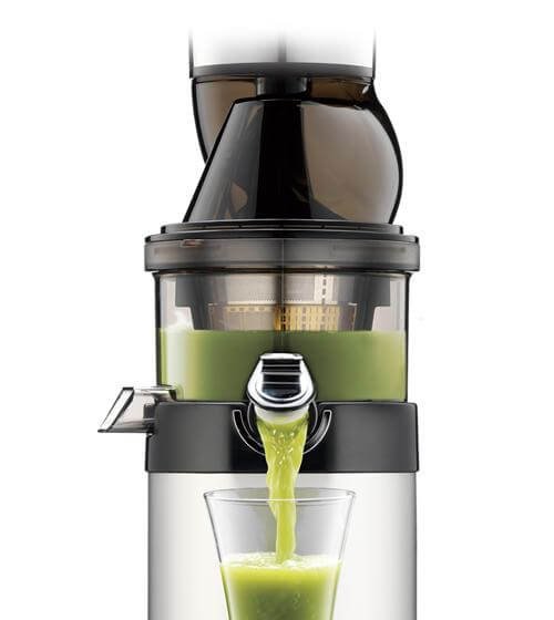 Kuvings Slow Juicer meyve sıkacağı ince bir tasarıma sahiptir, bu da mutfağınızda çok az yer gerektiği anlamına gelir. Meyve suyu sıkma işlemi şeffaf meyve suyu kabı ve şeffaf besleme haznesi aracılığıyla gözlemlenebilir. Doğru miktarda besleme yapılır.